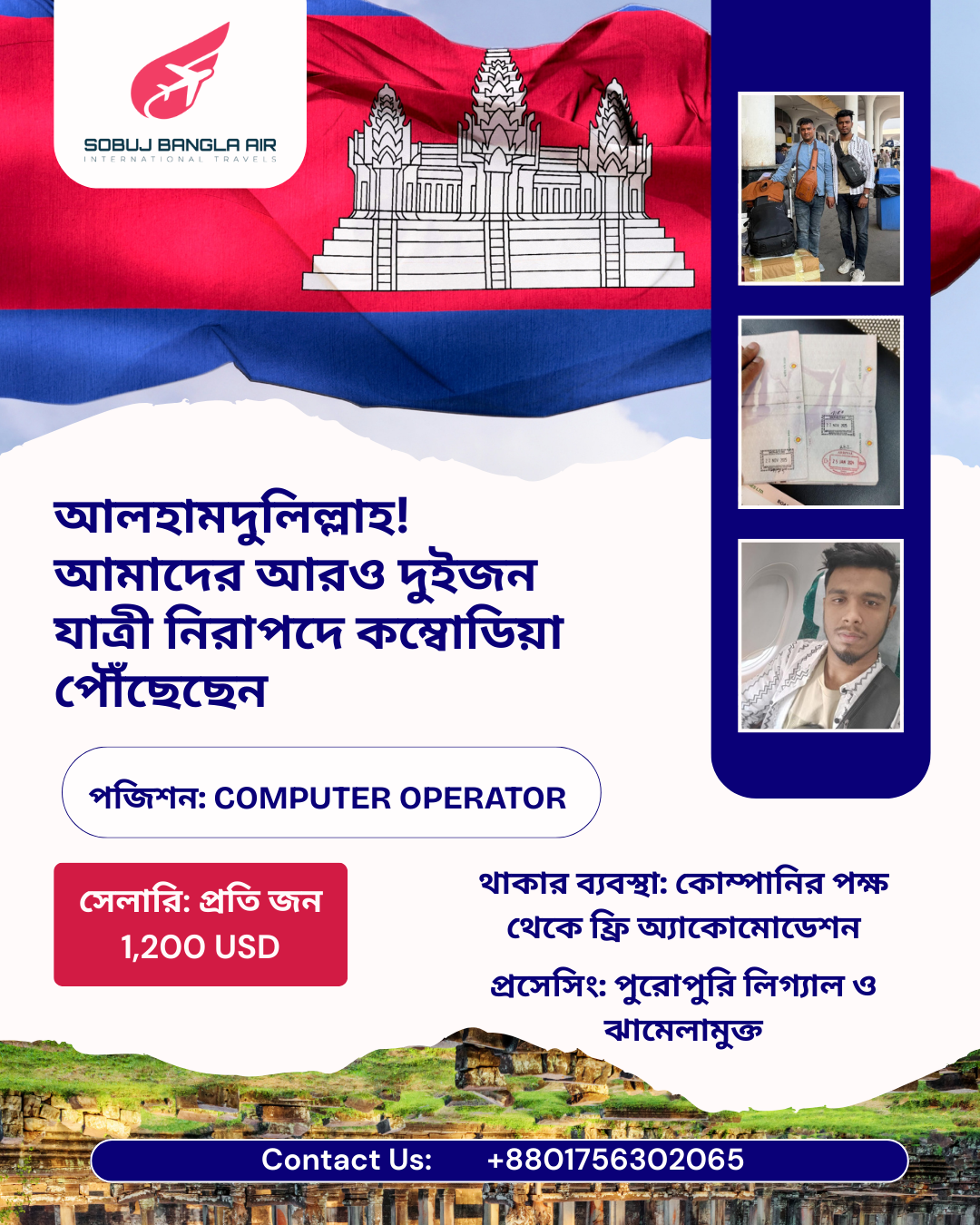 বর্তমান দেশের বেকারত্বের কথা বিবেচনা করে, আমরা দিচ্ছি বাংলাদেশ থেকে প্রবাস জীবনের ১০০% সফল ও নিরাপদ কাজের নিশ্চয়তা।